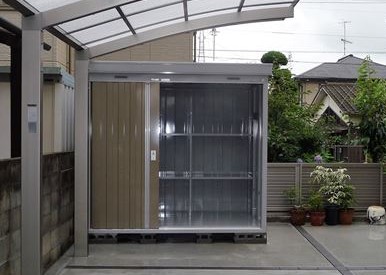 愛媛県松山市のエクステリア・外構リフォーム工事ならエクステリアムラハシ 物置工事大型物置から小型物置ガレージバイク保管庫